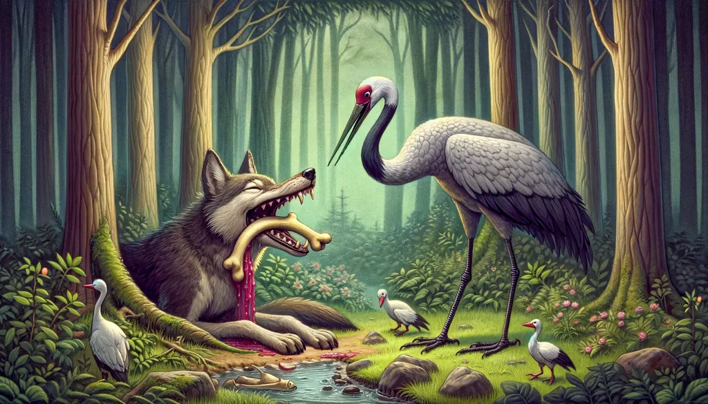 A través de la astucia del lobo y la sabiduría de la grulla, Esopo nos muestra cómo la integridad y la prudencia son esenciales en un mundo donde no siempre se puede esperar gratitud.
